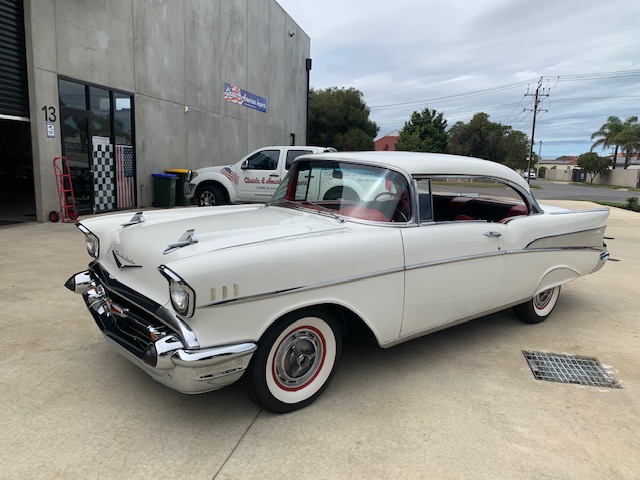 1957 Chevrolet Belair V8 Power Pack Automatic Sports Coupe, Stunning Mirror finish Paintwork , New Chrome Bumpers , Excellent Exterior Mouldings, Superb two tone interior, New wide White Tyres fitted all Round, A real joy to drive,