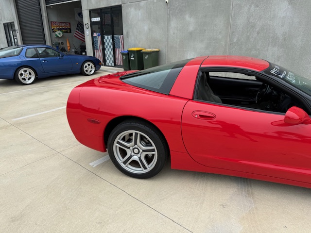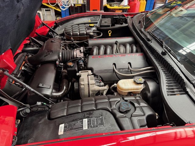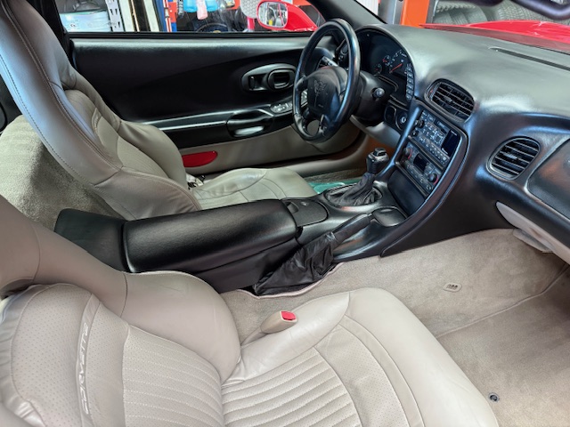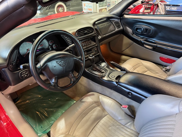 Dressed in a beautiful mirror-finish red paintwork, this C5 exudes head-turning appeal. Its sleek, aerodynamic design features signature pop-up headlights and a sculpted body, showcasing the Corvette’s iconic presence.
